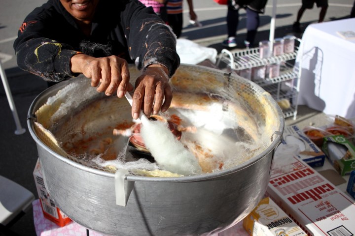 Alexander has come here for years, renting the machine and buying the sugar mix and volunteering her time to give away sweets for free. Her own four children are now adults. She refuses to grow old watching soap operas on the couch. So she stays busy doing things for other people.