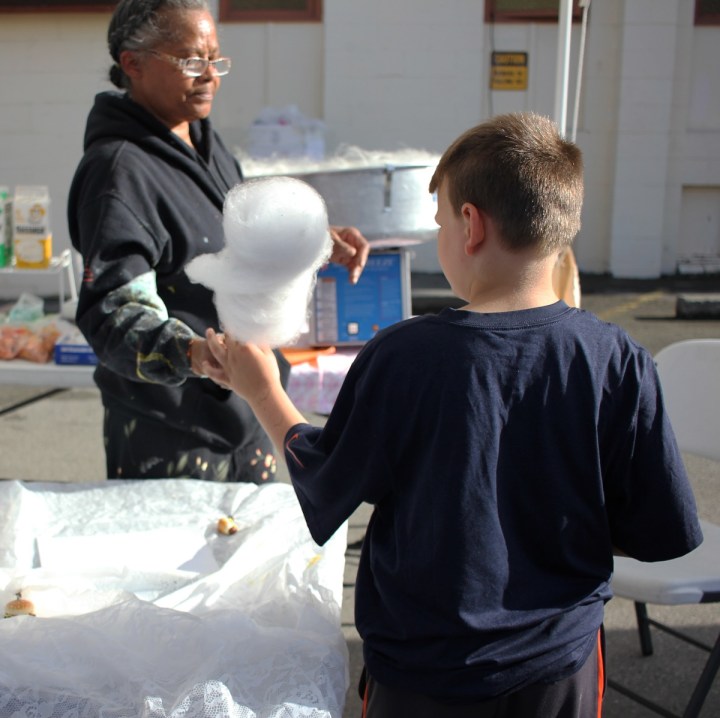 In the middle of it all, Gwen Alexander served cotton candy to a seemingly endless line of people. Wisps of blue cotton candy clung to her sweatshirt as she worked. Clumps of cotton candy stuck to her hands. A fine film of cotton candy covered her braids. And everywhere you looked, kids with sugar-coated smiles clutched pieces of melting cotton candy with sticky, colorful fingers.